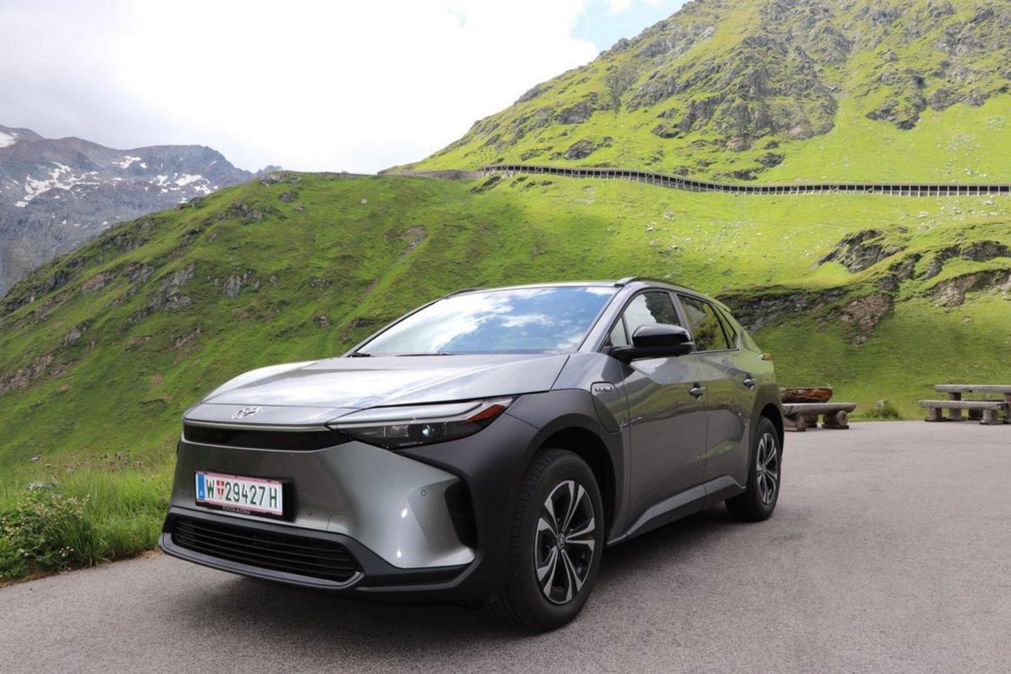 Erster Ladestopp in St. Georgen im Attergau: Nach ca. 217 km hängt der Toyota mit 42 Prozent an einer Smatrics-Ladesäule. Wir nutzen die Zeit für ein zweites Frühstück. Knapp eine halbe Stunde später ist unser Auto zu 92 Prozent voll und weiter gehts Richtung Großglockner. Mit 380 km Reichweite sollten wir locker unser Ziel auf rund 2300 m erreichen können. Es geht zur Sache. Wir stehen an der Mautstation Ferleiten am Beginn der Großglockner Hochalpenstraße. trics-Ladesäule. Wir nutzen die Zeit für ein zweites Frühstück. Knapp eine halbe Stunde später ist unser Auto zu 92 Prozent voll und weiter gehts Richtung Großglockner. Mit 380 km Reichweite sollten wir locker unser Ziel auf rund 2300 m erreichen können.