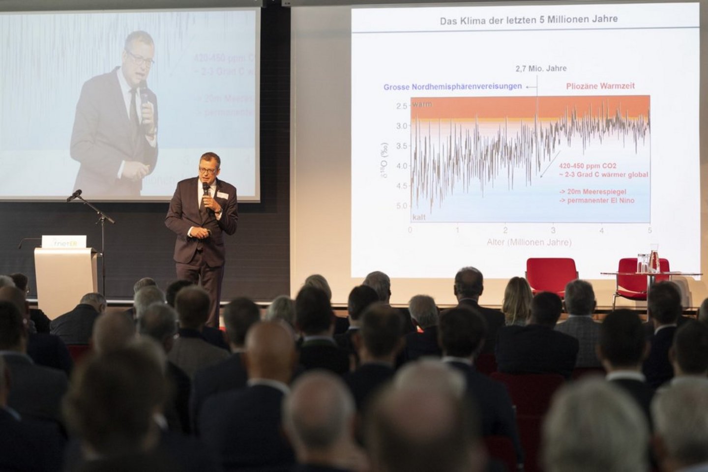 Es geht um die Liebe für unseren Planeten und die nächste Gene- ration“, poltert Gerald Haug, Professor an der Universität ETH Zürich und Präsident der Deutschen Akademie der Wissenschaften Leopoldina. Der anerkannte Klimaforscher heizt den rund 200 geladenen Gästen der Firma Thöni in Telfs in Tirol gehörig ein. Die EU-Staaten haben sich bekanntlich gesetzlich verpflichtet, unseren Kontinent bis 2050 klimaneutral zu machen und bis 2030 mindestens 55 Prozent der Treibhausgase im Vergleich zu 1990 einzusparen. Aber: „Kein Land Europas ist in der richtigen Spur, wir wandeln am Worst-case-Weg und steuern auf eine globale Erderwärmung von 4,5 bis fünf Grad zu. Das katapultiert uns 2,7 Millionen Jahre zurück in ein Szenario der pliozänen Warmzeit, als die Ozeane 20 Meter höher waren als heute. Wir müssen vor allem den Verbrennungsprozess stoppen. Noch ist es zu schaffen“, beendet Haug seinen Vortrag mit einem vorsichtig optimistischen Szenario.