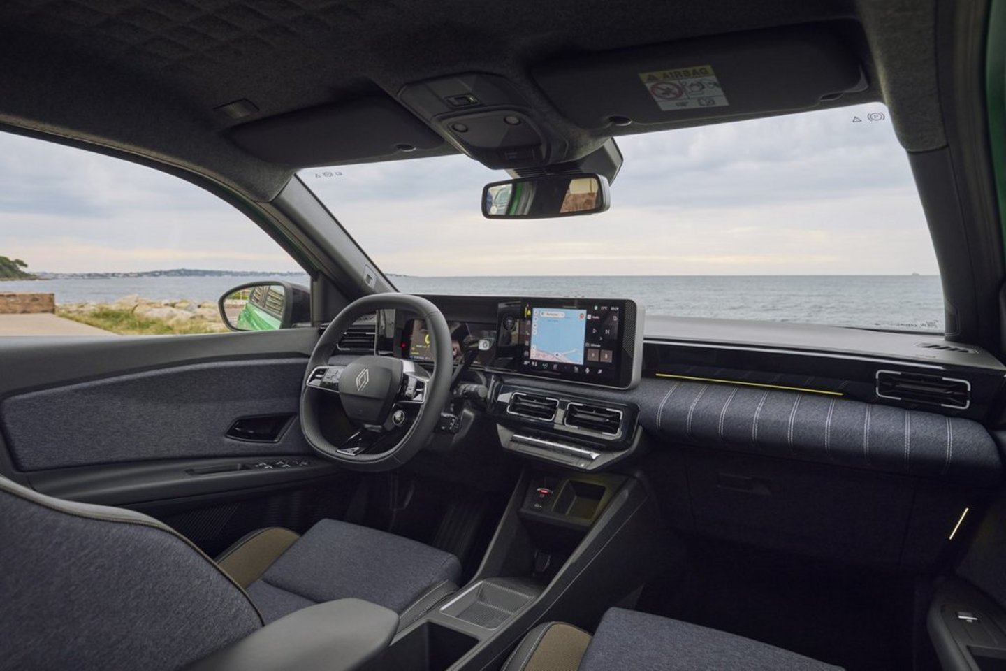Mit 3,92 m Länge liegt der Fünfer zwischen dem 30 cm kürzeren Twingo und dem 13 cm größeren Clio. Obwohl er kürzer als der im Frühjahr eingestellte Zoe ist, steht der 5er wesentlich bulliger auf der Straße. War der Zoe noch richtig zierlich, so hat der 5er einen feisten Auftritt. Hauptgrund sind die mindestens 18 Zoll großen Räder, die – salopp gesagt – an jedem Karosserieeck’ aufgehängt sind, ganz wie beim Original. Das sorgt für einen langen Radstand, viel Platz im Innenraum und ein quietschfideles Fahrverhalten. Allerorts zieren den Wagen Reminiszenzen an die Urversion, wie etwa die Rückleuchten. Ein nettes Detail findet sich auf der Motorhaube: Dort, wo beim Original die Luftansaugung war, findet sich nun ein Sichtfenster mit der in Segmenten aufgeteilten Zahl Fünf. Jedes der vier Segmente steht für 25 Prozent Ladestand, so sieht man gleich von außen, wie es um die Batterie steht. Die Liebe zum Detail setzt sich auch im Interieur fort. Selten hat ein digitales Cockpit in einem Retro-inspirierten Auto so gut gepasst – wo jetzt zwei Displays in einem Panel zusammengefasst sind, saß früher der gleichförmige Armaturenkasten. Mutige können sich bunte Farben für das sto¥bespannte Armaturenbrett und die Türverkleidungen aussuchen, wer nicht ganz so kühn ist und dennoch im Trend liegen mag, dem sei der Jeanssto¥ ans Herzen gelegt.
