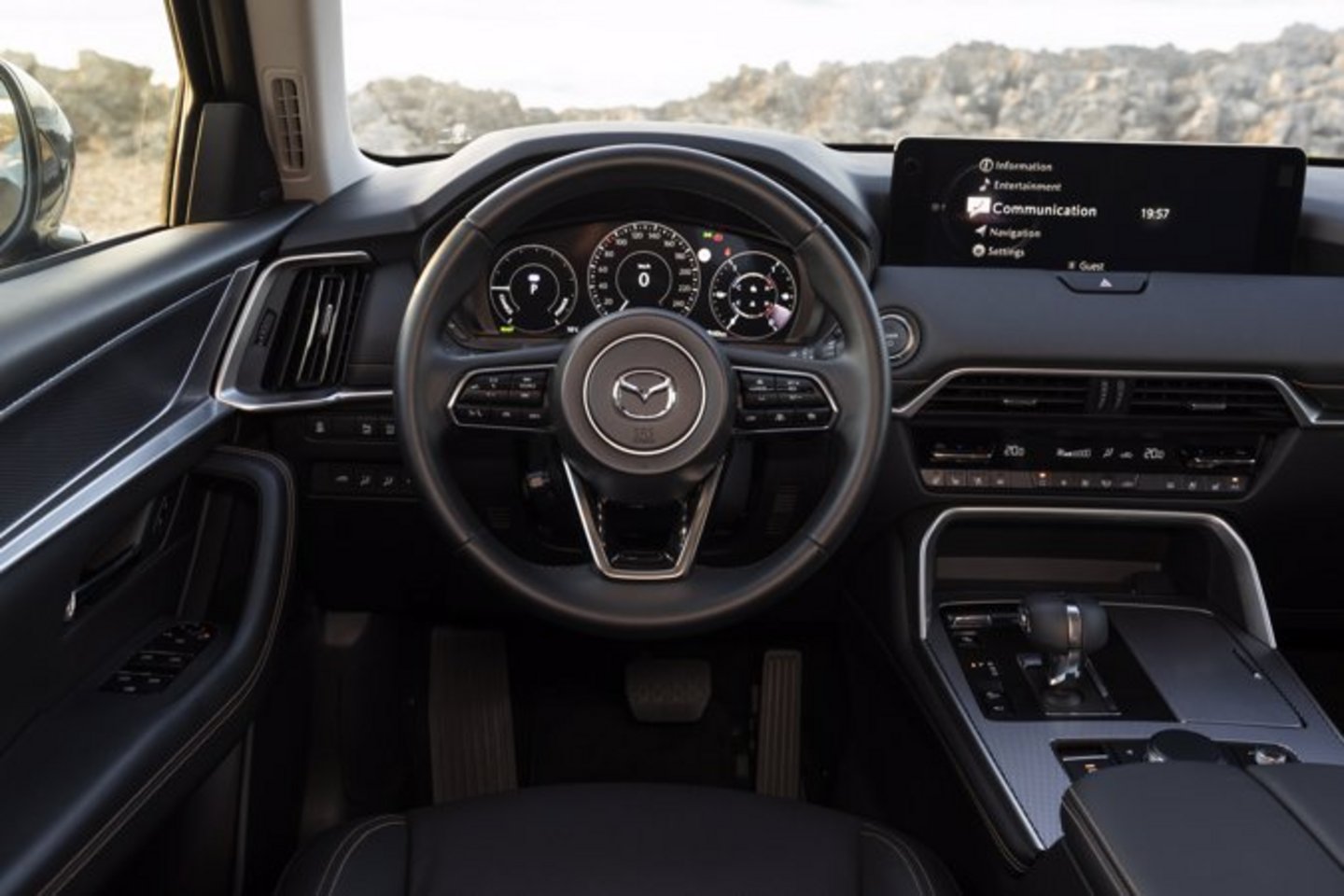 Das neue Flaggschiff misst stolze 4,75 m und ist über dem CX-5 positioniert. Dazu serviert Mazda ein nobles und hochwertiges Interieur, Allradantrieb sowie eine Reihe von technischen Innovationen, die Fahrdynamik, Komfort und Sicherheit auf ein höheres Level heben sollen. Gern erwähnt man bei Mazda an dieser Stelle den Begriff Premium. Ein Beispiel dafür ist ein kamerabasiertes Personalisierungs-System mit Gesichtserkennung, das einem nach Eingabe der Größe auch eine Sitz- und Lenkradeinstellung vorschlägt. Der 1,9 m-Autor fand sich bei erster Anprobe aber dann doch etwas zu weit nach hinten verschoben. Weiters erkennt das System unterschiedliche Fahrer- und Fahrerinnen und nutzt beim Wiedereinstieg mehr als 250 gespeicherte Einstellungen, darunter auch Musik- und Klimawünsche, zur Personalisierung.