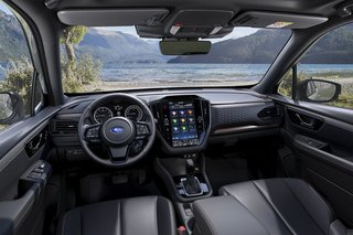 Obwohl ganz neu, ist es doch so etwas wie das Wiedersehen eines alten Freundes: Die sechste Generation des Subaru Forester ist sich selbst treu geblieben. Das hat einen logischen Grund, ist doch der Forester eines der wichtigsten Modelle der Marke. Der Vierzylinder-Boxermotor mit E-Unterstützung ermöglicht, bei annähernd gleichen Fahrleistungen zum Vorgänger, die Leistung des Verbrenners zu reduzieren. Statt 150 PS gibt es jetzt 136 PS, was Steuer und CO2-Ausstoß reduziert. Verteilt wird die Kraft über ein CVT-Getriebe an den Subaru-typischen symmetrischen Allradantrieb. Das Cockpit ist quasi ident mit dem des Crosstrek: Analoge Armaturen, Tasten und Drehregler für wesentliche Funktionen, gleichzeitig fehlt es nicht an Modernität: Zahlreiche Funktionen sind via Hochformat-Touchscreen abzurufen.