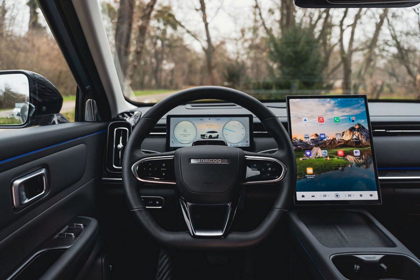 Innen verströmt der Jaecoo durchaus Wohlfühlambiente. Verarbeitung und Raumangebot überzeugen, auch im Fond gibt es ausreichend Platz für Bein und Kopf. Das Interieur präsentiert sich hochwertig, ist klar und nicht überfrachtet angerichtet und auch das Kunst-Leder wirkt nicht allzu „plastikhaft“. Blickfang ist der hochformatige 14,8-Zoll-Touchscreen, über den fast sämtliche Funktionen gesteuert werden.