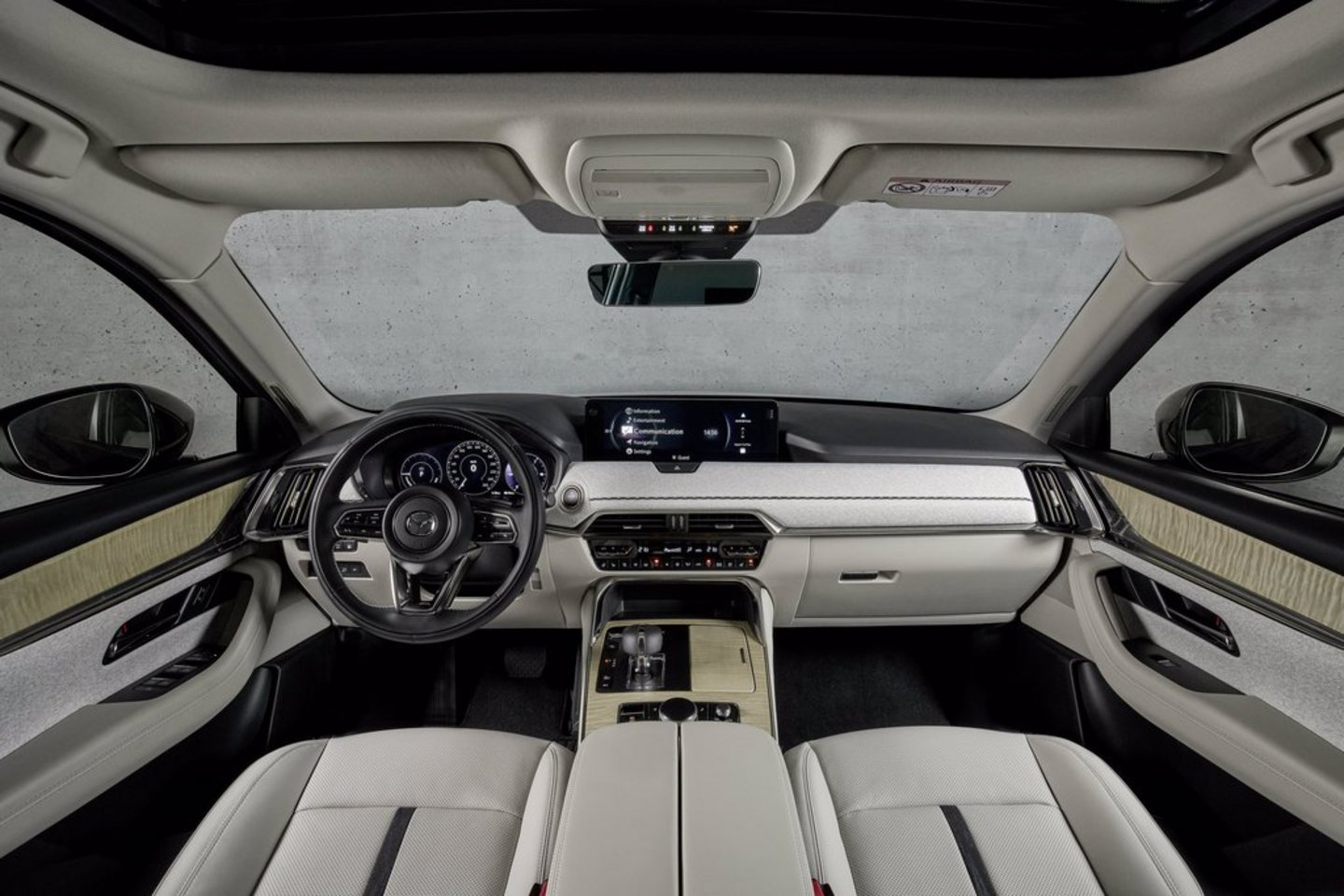 Die zweite Überraschung ist die Motorisierung. Mazda bringt den Neuen als Plug-in-Hybriden mit 327 PS Systemleistung aus dem 2,5-Liter-Benziner samt E-Motor, der von einer 17,8 kWh-Batterie gespeist wird, und als Reihensechszylinder-Diesel (3,3 Liter) mit Mild-Hybrid-Unterstützung (0,33 kWh/48 Volt), in dem 254 PS abgerufen werden können. Beide Varianten kommen mit Achtgangautomatik und Allradantrieb und erfüllen die Abgasnorm Euro 6e. Der Plug-in bringt leer mit Fahrer maximal 2323 Kilo auf die Waage, der Diesel 2211. Beide können bis zu 2500 Kilo Last ziehen. Der Kraftstoffverbrauch beträgt laut WLTP-Norm 1,6 Liter plus 23,8 kWh (36 Gramm CO2) bzw. 5,8 Liter (151 Gramm).
