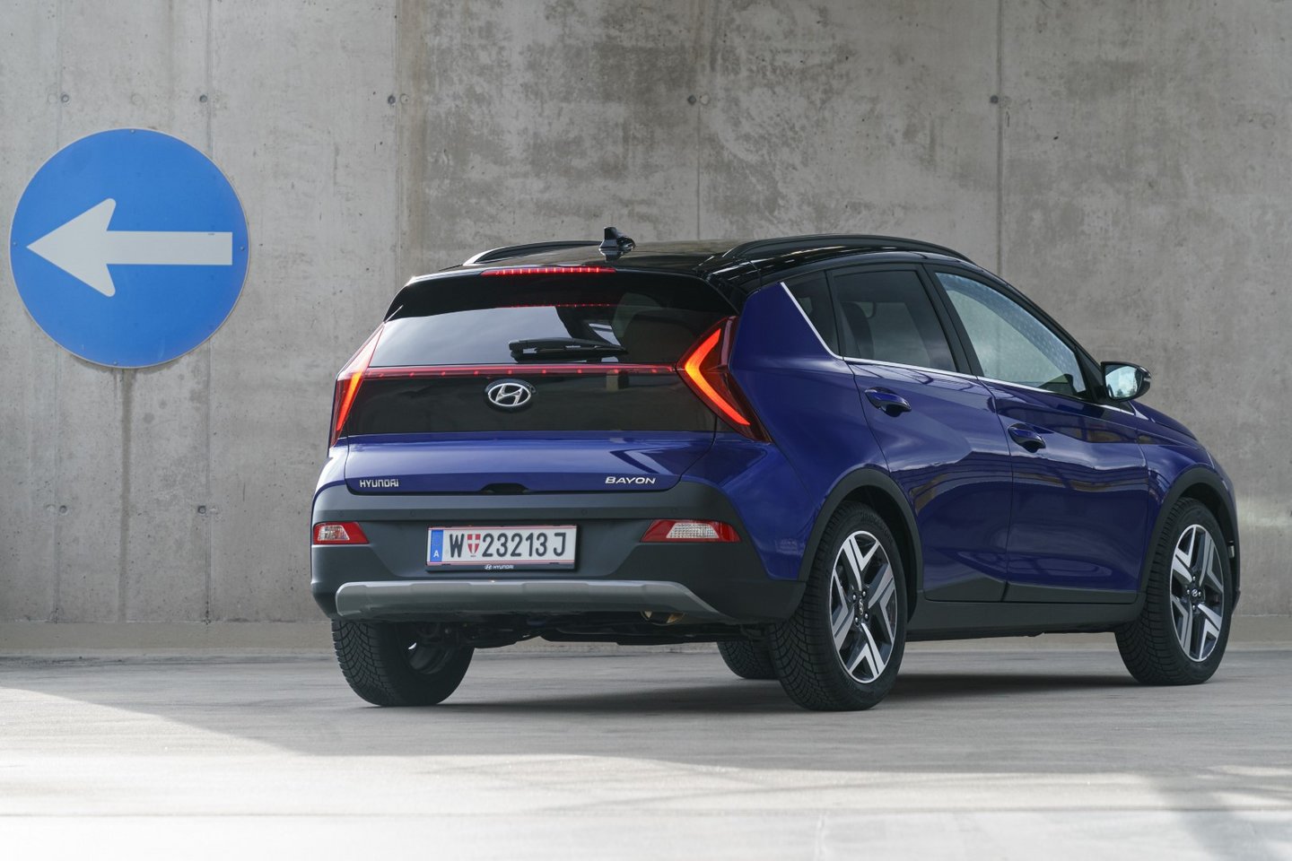 Bayon. Ein Beispiel, wie sehr die Fahrzeuggattungen miteinander verschmelzen, ist der neue Hyundai Bayon. Vom Wesen her hätte der kürzlich geliftete Kona besser zu den anderen Kollegen gepasst, wir haben uns dennoch für den Bayon entschieden, da dieser erstens brandneu in den Schauräumen steht und zweitens in Länge und Breite dem Yaris Cross und dem Mokka annähernd gleicht. Die knapp zehn Zentimeter Höhenunterschied im direkten Vergleich mit dem Yaris Cross geben jedoch deutlich Auskunft darüber, was der jeweilige Wagen darstellen will: der Toyota den Geländewagen, der Hyundai hingegen fühlt sich wie ein leicht höhergelegter, herkömmlicher Kombi an.