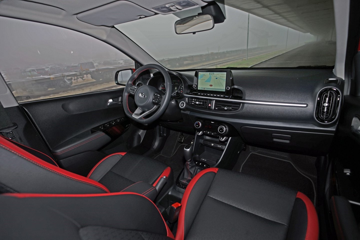 Die GT-Line-Ausstattungsversion würden wir schon alleine wegen der Sitzkombination empfehlen, die mit ihren fröhlichen roten Akzenten sehr gut zum Auto passt. Auch hat man hier alle wesentlichen Spezereien wie Klimaautomatik, Lenkradheizung, autonomes Notbremssystem mit an Bord. Wer noch € 1500,– für das Technikpaket drauflegt, bekommt ein Navi, das Apple Carplay und Android Auto kann, dazu kabelloses Laden von Handies, eine Rückfahrkamera und einen Smart Key. Damit lässt der Picanto kaum noch Wünsche offen.