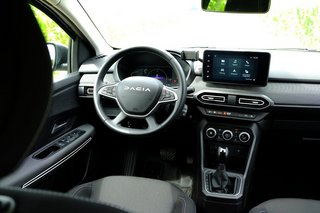 Wie fährt er sich? Die HybridVersion bringt einen deutlichen Komfortgewinn, nicht zuletzt auch durch das Automatik-Getriebe. Das Anfahren erfolgt meist elektrisch, bei normalem Beschleunigen hilft der Verbrenner und wird dabei akustisch nicht aufdringlich. Man erntet überraschend kraftvollen Antritt, fährt in der Stadt laut Dacia bis zu 80 Prozent elektrisch und verbraucht unterm Strich um die fünf Liter, bei sanfter Fahrweise schafft man einen Vierer vor dem Komma –das ist durchaus beachtlich. Bei flotter Autobahnfahrt übernimmt großteils der Verbrenner, dieser wirkt dann doch ein wenig angestrengt, weil er nur über vier Fahrstufen verfügt.