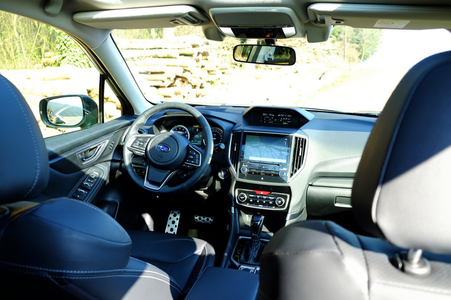 Überhaupt brennt der Forester ein Technikfeuerwerk ab: Neben dem bekannten Eye-Sight-System kommt das Japan-SUV nun mit SRVD (Subaru Rear Vehicle Detection), Rückfahrwarner samt Bremsfunktion, Side View Monitor und – erstmals in Europa – dem Driver Monitoring System. Letzteres basiert auf einer Gesichtserkennung, dass nicht nur bei Müdigkeit warnt. Es erkennt auch, wer gerade hinter dem Steuer sitzt und kann so die gespeicherte Sitzposition sowie die Spiegeleinstellung individuell aufrufen.