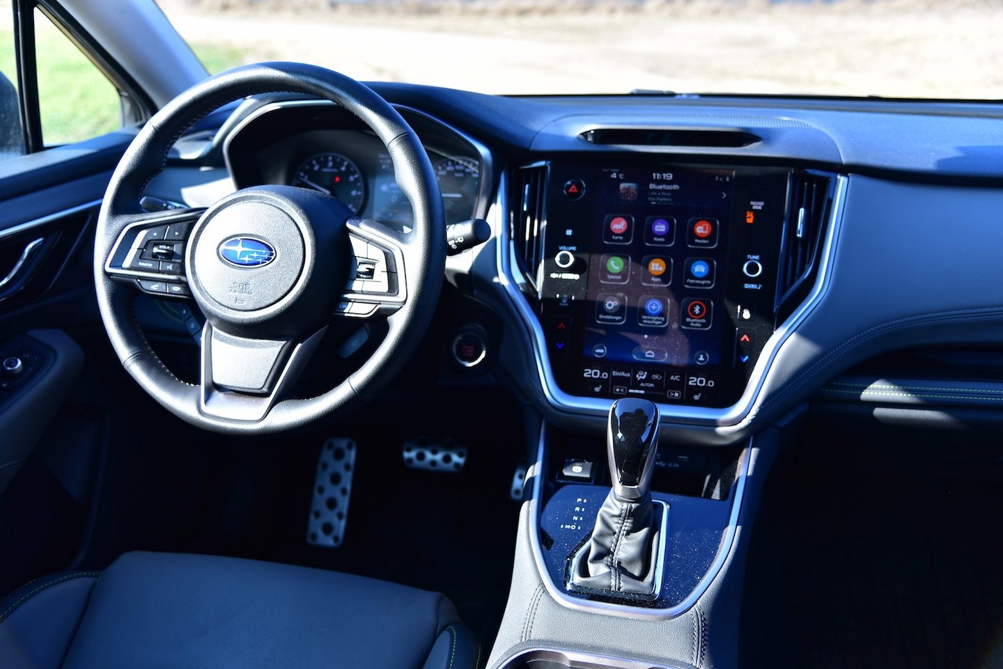 Befeuert wird der Outback von einem 2,5-l-Boxer-Vierzylinder (ohne Turbounterstützung) mit 170 PS, was ihn in Kombination mit dem stufenlosen CVT-Getriebe nicht gerade zum druckvollen Sprinter macht. Dabei fühlt sich das Getriebe durch simulierte Gangstufen aber schon angenehmer an als bei früheren Generationen. Der Outback ist mehr der souveräne Gleiter für die Langstrecker. Passend dazu serviert Subaru innen ein feines Interieur mit Nappaleder, hübschen Ziernähten und Klavierlack. Zentrales Element ist der 11,6-Zoll-Hochkant-Touchscreen, dazu gibts neues Infotainment und erweiterte Assistenzfunktionen samt verbessertes EyeSight-System. Die Platzverhältnisse sind auch in Reihe zwei großzügig, das Heck bietet 561 Liter an Stauraum plus Kellerabteil, wobei eine relativ hohe Ladekante (75 cm) überwunden werden muss. Unterm Strich bleibt der Outback auch in seiner aktuellen Version seinen bekannten Tugenden treu: Er ist ein robuster und komfortabler Familienkombi für Individualisten mit herausragenden Schlechtwege-Eigenschaften, er wurde lediglich ein wenig schicker, größer und moderner.