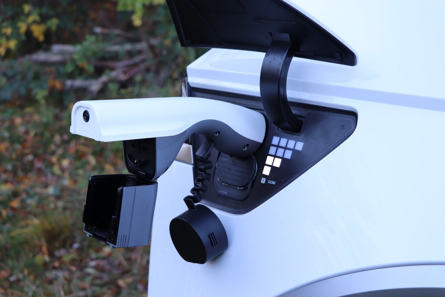 Schon bei erster Annäherung macht der E-Hyundai mit seinem kantigen Techno-Look ordentlich was her. Mit 4,63 m Außenlänge ist er ein großes Stück Auto – praktisch genauso lang wie etwa ein Octavia-Kombi und sogar noch ein Alzerl länger als ein VW ID.4.